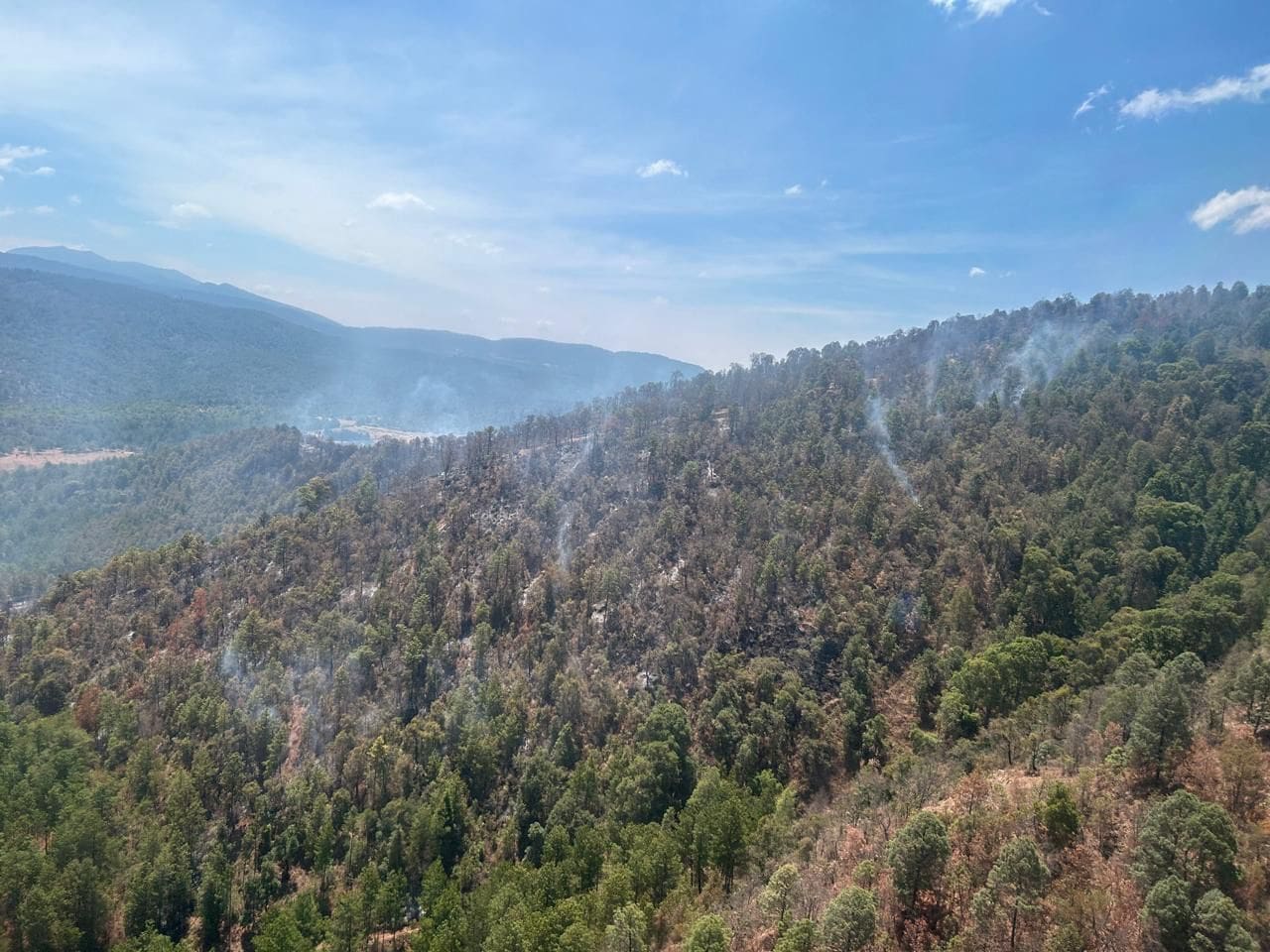 La Comisión Forestal de Michoacán (Cofom) informó que, de acuerdo con el Centro Estatal de Manejo del Fuego, el helicóptero de la Dirección de Servicios Aéreos de la Secretaría de Seguridad Pública (SSP) realizó 15 descargas de agua.