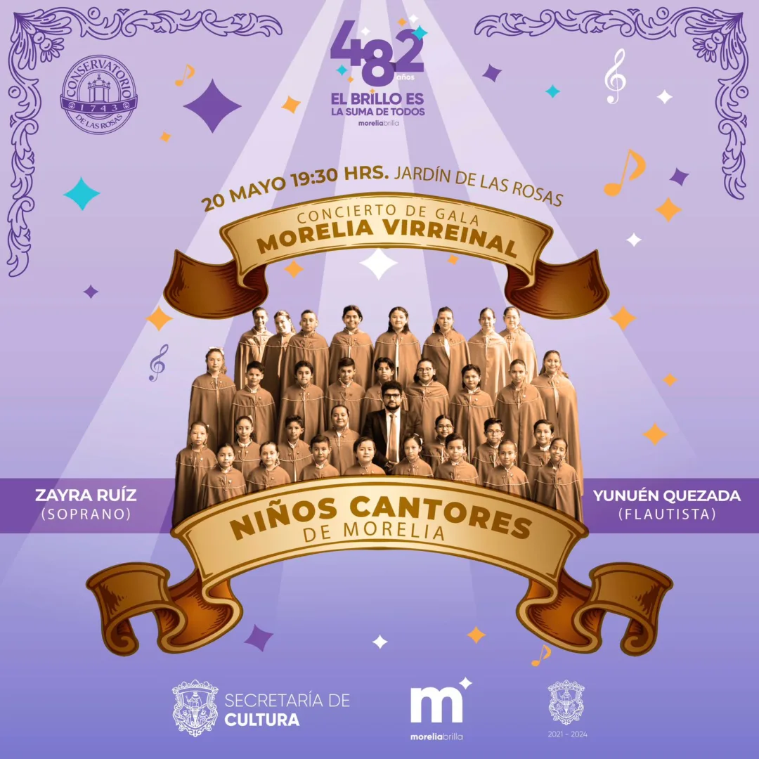 El concierto estará encabezado por los Niños Cantores de Morelia, que forman parte del Conservatorio de la Rosas, escuela de tradición y formación musical considerado el primer conservatorio en América, fundado en 1743.