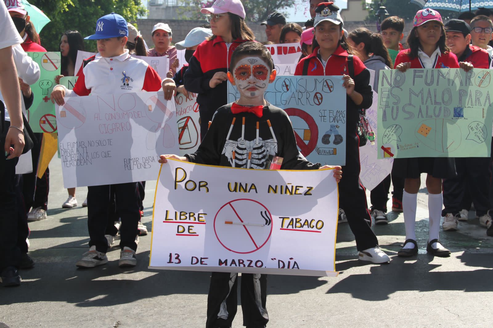 Con la participación de instituciones educativas del nivel básico, la Facultad de Medicina “Dr. Ignacio Chávez”, el Consejo Estatal contra las Adicciones, y la Comisión Estatal para la Protección contra Riesgos Sanitarios (Coepris), el contingenté se desplegó por la avenida Madero para concluir en la plaza Juárez, donde participantes se pronunciaron en pro de quienes no fuman.