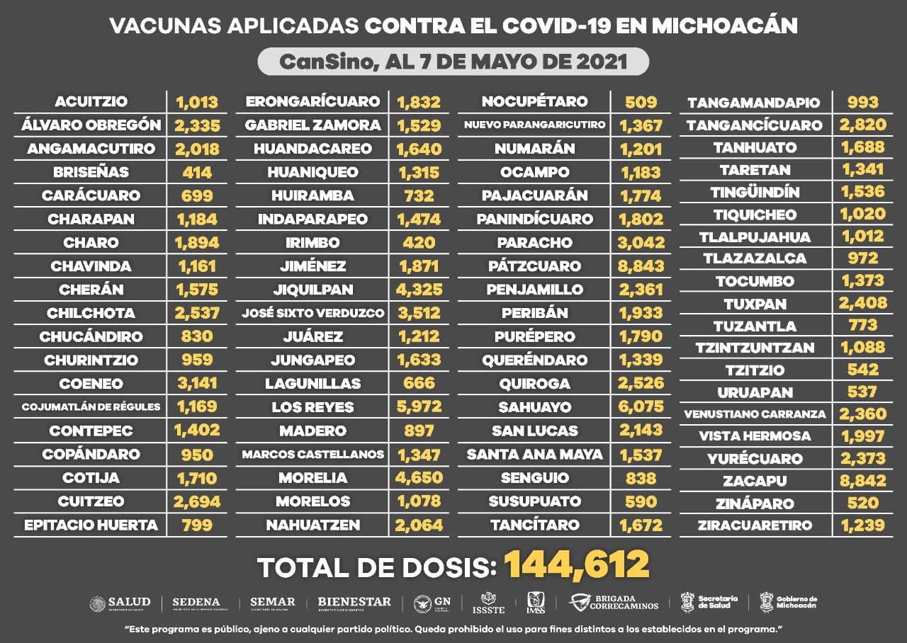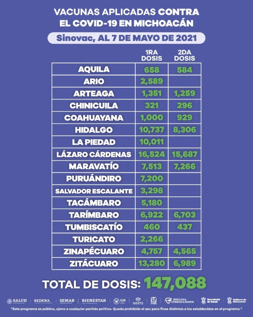 Hasta la fecha, personal médico, de enfermería y paramédico de la Secretaría de Salud de Michoacán (SSM), ha apoyado en la aplicación de 632 mil 742 dosis a este sector de la población más vulnerable a fallecer en caso de contraer la enfermedad.