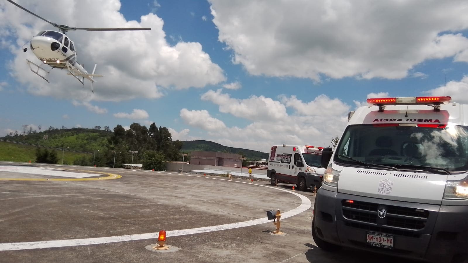 Morelia, Michoacán, 10 de agosto del 2022.- Derivado de las múltiples lesiones que ocasionara un accidente de motocicleta, un menor de edad originario del municipio de Lázaro Cárdenas fue trasladado hacia el Hospital Infantil de Morelia “Eva Sámano de López Mateos”, con la intervención de la ambulancia área.