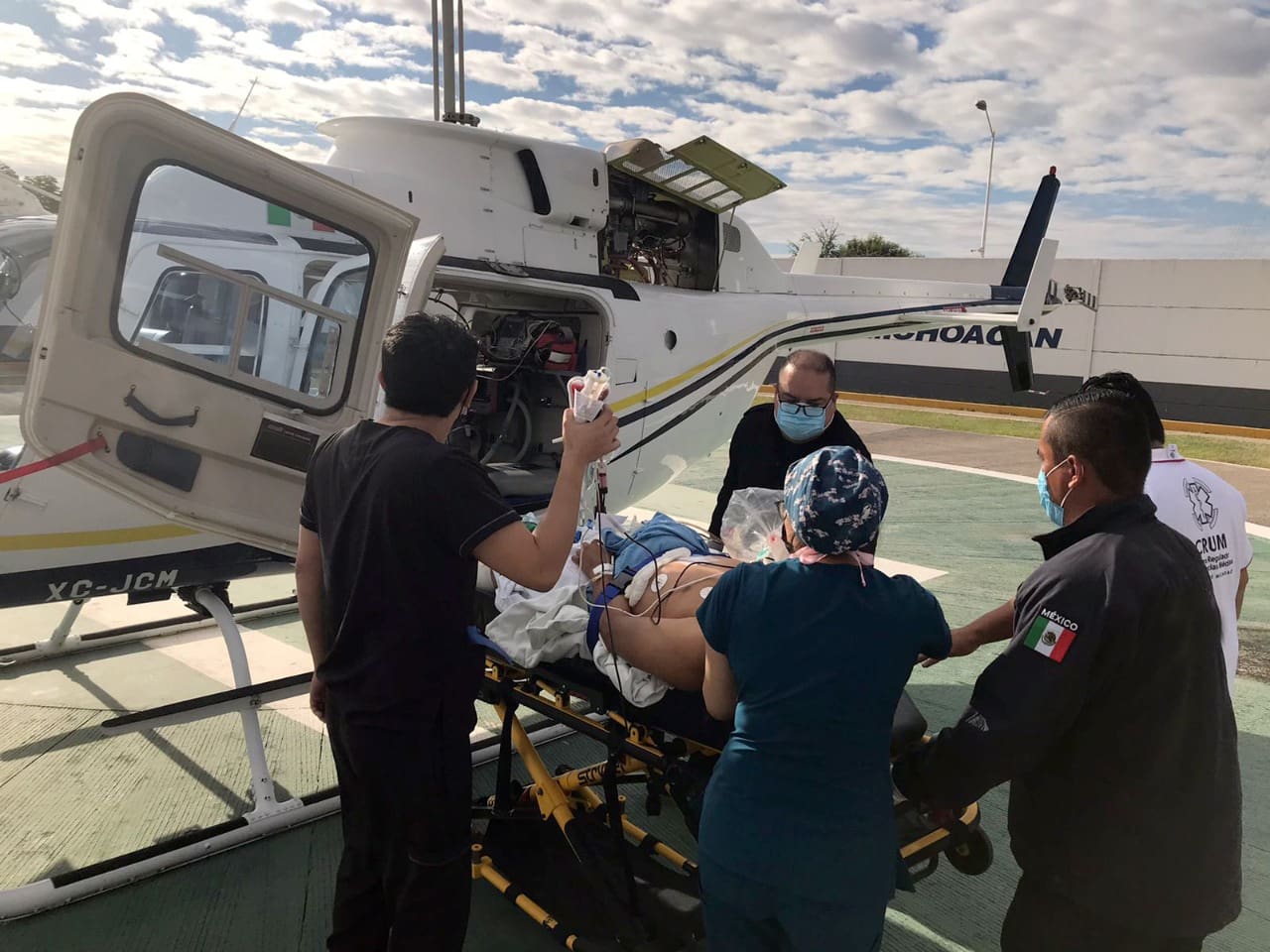 Morelia, Michoacán, 25 de enero del 2022.- El multidisciplinario del Centro Regulador del Urgencias Médicas (CRUM), de la Secretaría de Salud de Michoacán (SSM), realizó con éxito el traslado vía aérea un paciente por Código Trauma desde el hospital IMSS Bienestar de Huetamo al Hospital Civil de Morelia.