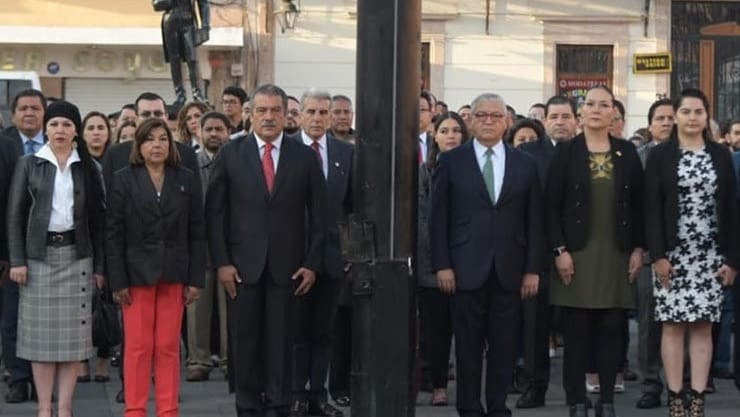 Encabezando el evento por parte del gobierno estatal, el secretario de Finanzas y Administración, Carlos Maldonado Mendoza, rindió los honores a la enseña tricolor, que consistieron en la colocación del lábaro en el Asta, saludo y entonación del Himno Nacional.