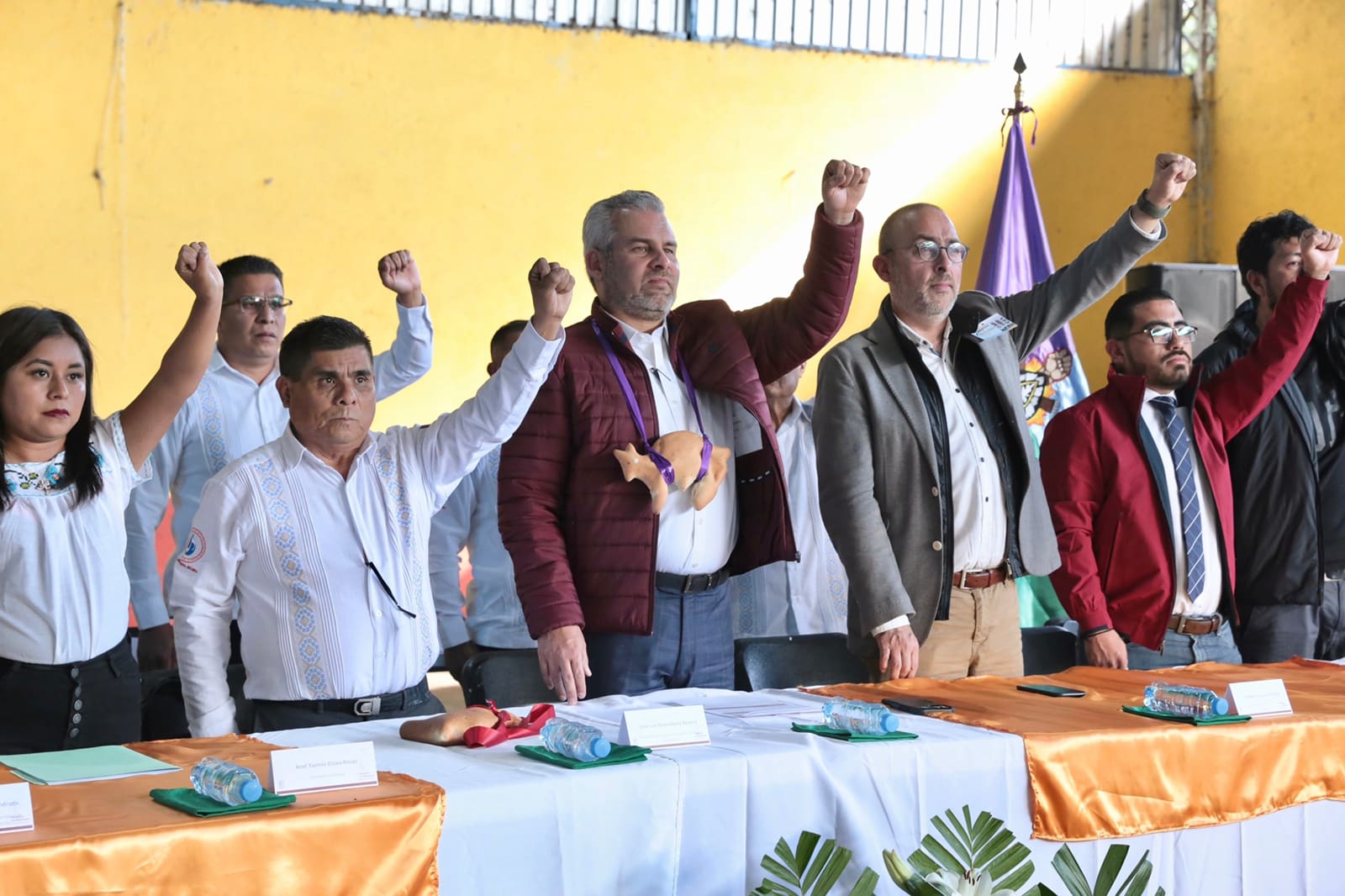 Estuvieron también presentes Humberto Urquiza Martínez, subsecretario de Enlace Legislativo y Asuntos Registrales, Felipe Orlando Aragón, representante del Frente por la Autonomía de Consejos y Comunidades Indígenas, Sergio Arturo Carrillo, director de Catastro, consejeros comunales, miembros del Consejo Menor, grupo voluntario de Protección Civil, comisariatos de bienes comunales, colaboradores y representantes purépechas.