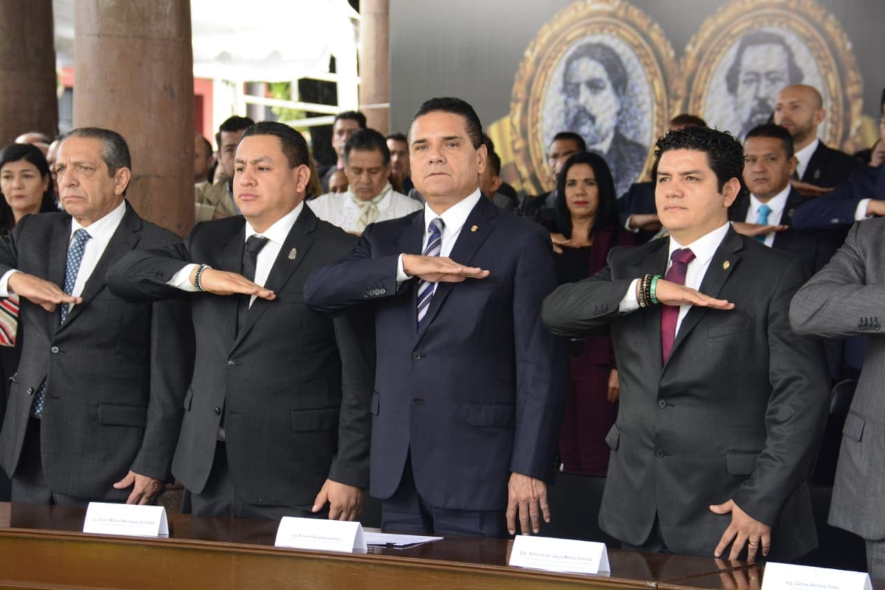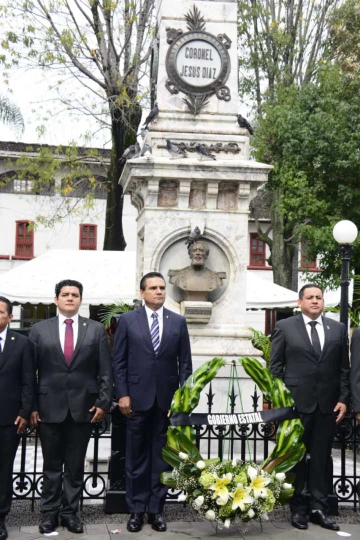 Finalmente, acompañado por autoridades estatales y municipales, el mandatario estatal encabezó la guardia de honor y ofrenda floral que se colocó en el monumento a los cinco valientes patriotas que dejaron un legado de generosidad a nuestra República: José María Arteaga Magallanes, Carlos Salazar Ruíz, Jesús Díaz Ruíz, Trinidad Villagómez y Juan González.