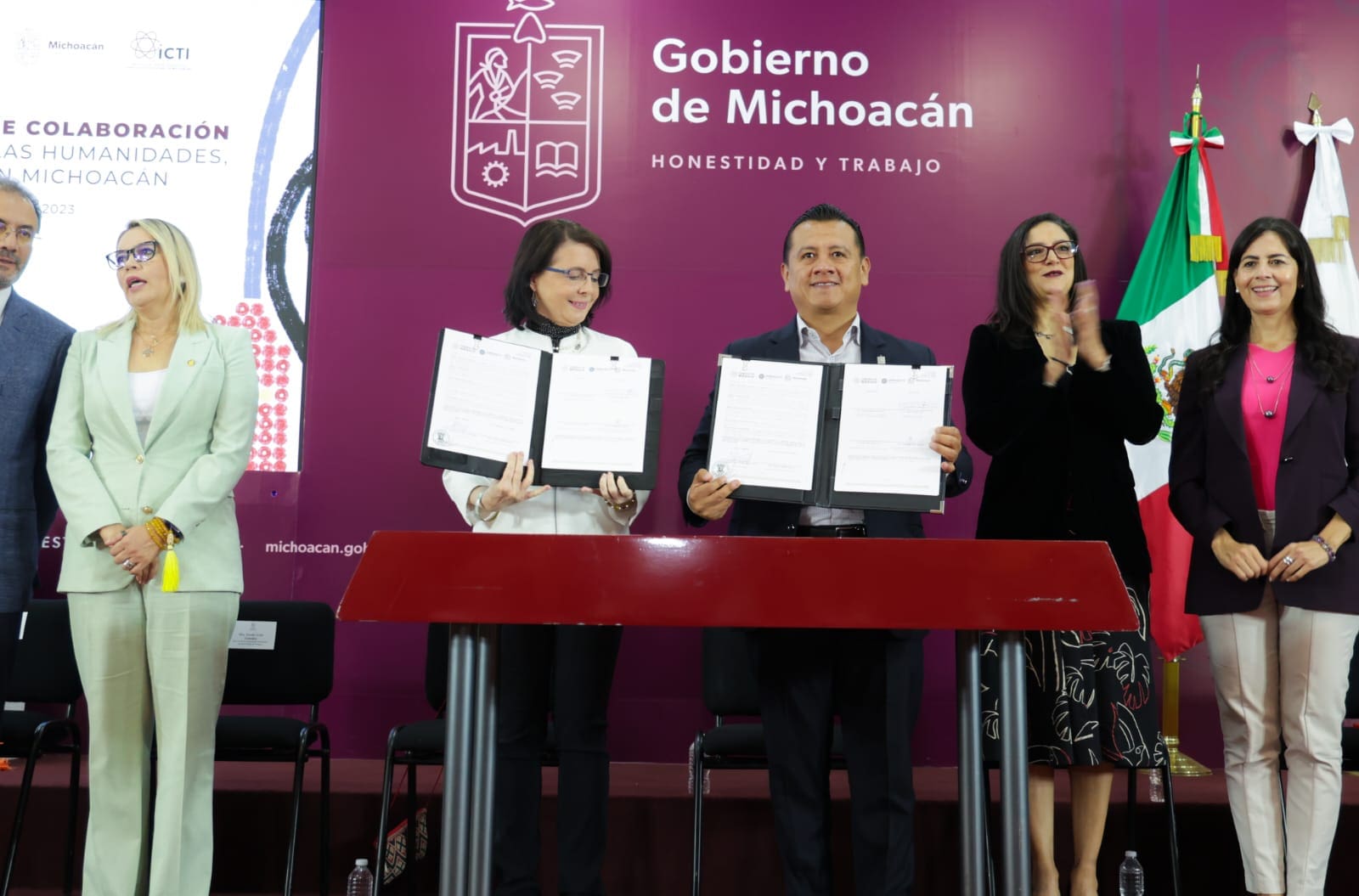 En el marco de la Ley General en materia de Humanidades, Ciencias, Tecnologías e Innovación (LGHCTI), el Consejo Nacional de Humanidades, Ciencias y Tecnologías (Conahcyt) y el gobierno del estado de Michoacán de Ocampo, celebraron la firma de un Convenio Marco de Colaboración para el Fortalecimiento de las Humanidades, Ciencias, Tecnologías e Innovación (HCTI) como herramientas de incidencia en el desarrollo de los territorios, el bienestar de las personas y la preservación ambiental.
