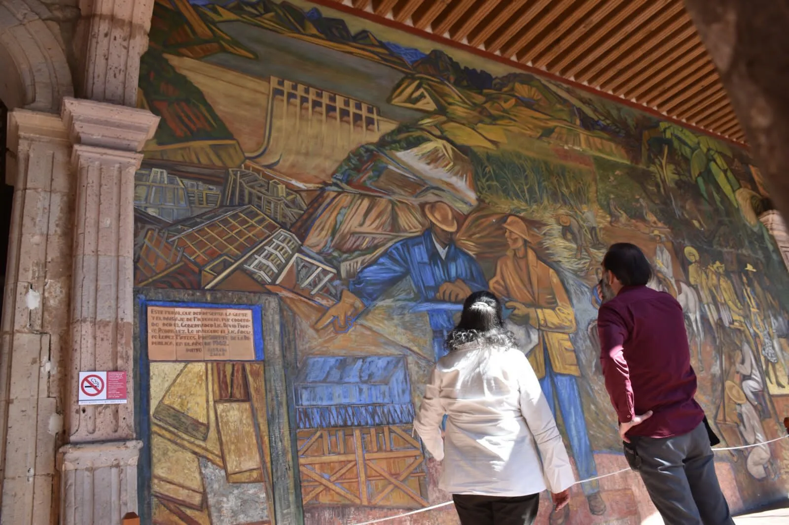 Morelia, Michoacán, 20 de febrero de 2024.- Palacio de Gobierno, que abrió sus puertas al público de manera reciente, alberga tres murales del artista michoacano Alfredo Zalce donde retrata la historia del estado. Por ello, aquí te dejamos algunos datos interesantes que tienes que saber antes de conocerlos.