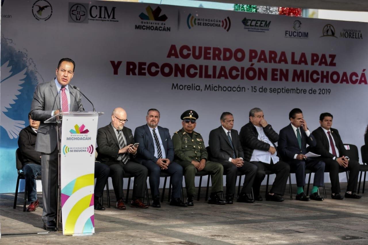 Durante la mañana de este 15 de septiembre, Carlos Herrera acompañó al gobernador de Michoacán, Silvano Aureoles Conejo a la firma del Acuerdo de la Paz y la Reconciliación, al cual se sumaron los integrantes del Consejo Interreligioso de Michoacán, de las Mesas de Seguridad y Justicia, del sector empresarial y académico de la entidad.