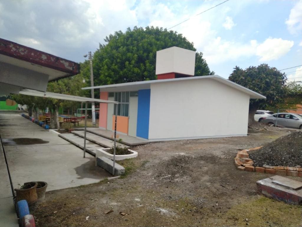 En la primaria 18 de Marzo, construye tres salones de clases; mientras que en el preescolar José María Morelos y Pavón, ubicado en la colonia Matamoros, ejecuta un módulo de baños.