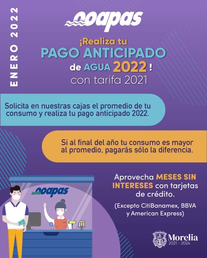 • Los morelianos pueden pagar el 2022 con la tarifa del 2021