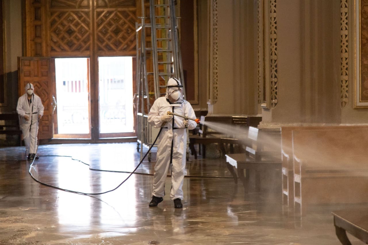 En esta ocasión, se sanitizaron los interiores de la Catedral de Morelia, así como de Casa de Gobierno, con la finalidad de atender y generar espacios seguros para la convivencia, siempre respetando las medidas de prevención emitidas por la Secretaría de Salud Federal.