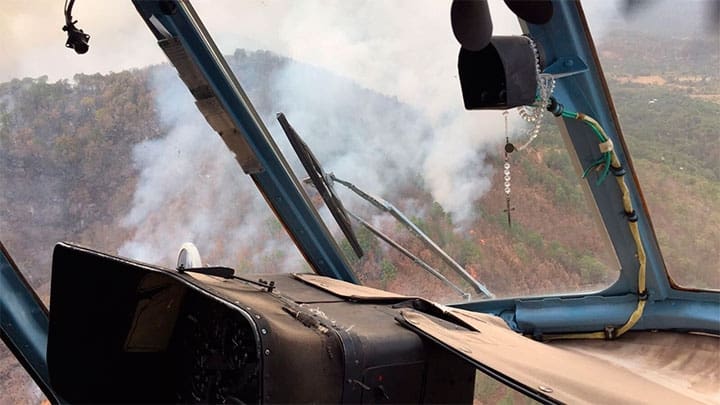 Mediante acciones conjuntas y la operación del helicóptero MI-17, se trabajó en el combate al incendio registrado en la comunidad del Chihuero, al noreste del municipio de Huetamo, sobre una extensión de 200 hectáreas, mismo que se mantiene controlado en un 80 por ciento al efectuarse 10 descargas de agua.