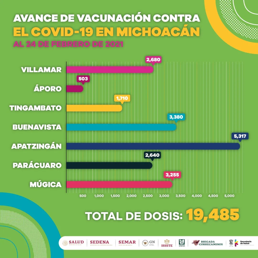 La aplicación de las primeras dosis del biológico en Villamar, Áporo, Tingambato, Buenavista, Apatzingán, Parácuaro y Múgica registra un 52 por ciento de avance.