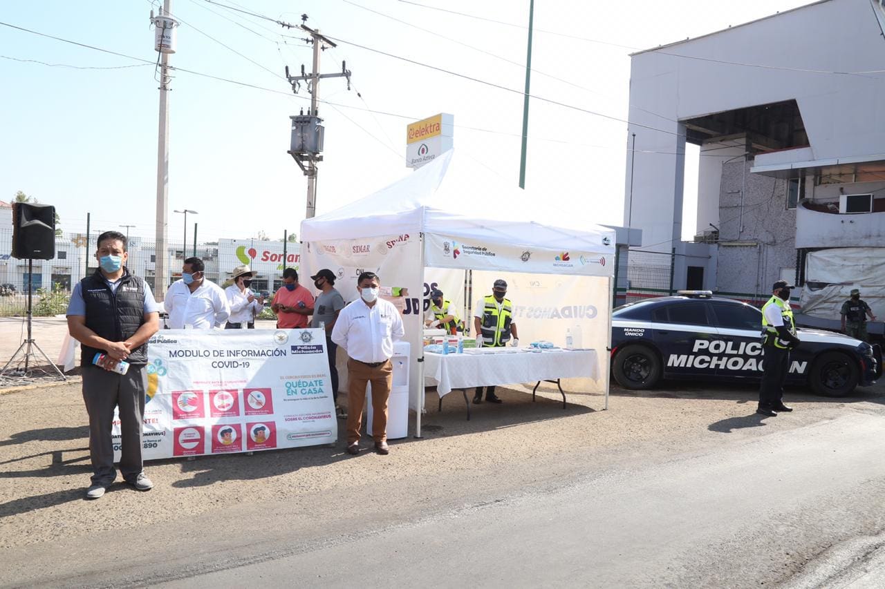 Dentro de las acciones que implementan los agentes de la Policía Michoacán en estos puestos de control, se solicita a quienes ingresan a la entidad a utilizar cubrebocas y solo transitar por la vía pública para llevar a cabo actividades esenciales, con el objetivo de garantizar su bienestar.