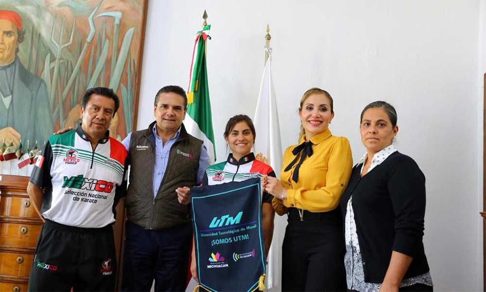 Morelia, Michoacán,- Este viernes el Gobernador de Michoacán, Silvano Aureoles Conejo, se reunió con la campeona de karate, Ararat Amezcua Arroyo, a quien ofreció su respaldo para representar a Michoacán junto con 25 jóvenes más de todo el país, en el 8th Wukf World Karate Championships, a desarrollarse en Bratislava, Slovakia.