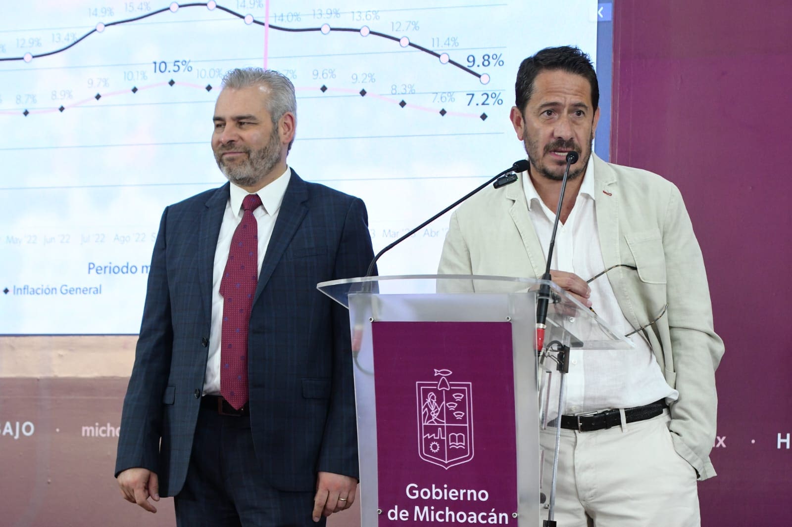 En conferencia de prensa encabezada por el gobernador Alfredo Ramírez Bedolla, el secretario de Desarrollo Económico Claudio Méndez Fernández, explicó que el índice alimentario se ubica en un 9.8 por ciento, y el segundo en un 7.2 por ciento.