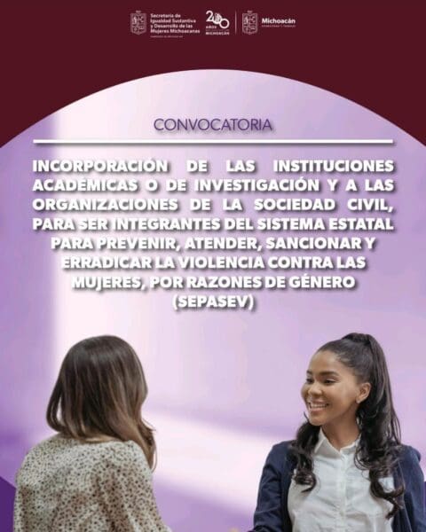 Para conocer la convocatoria se puede acceder a la liga https://mujer.michoacan.gob.mx/convocatorias/incorporacion-de-las-institucionesacademicas-o-de-investigacion-y-a-lasorganizaciones-de-la-sociedad-civilpara-ser-integrantes-del-sepasev/ y hay dos modalidades para entregar los requisitos.