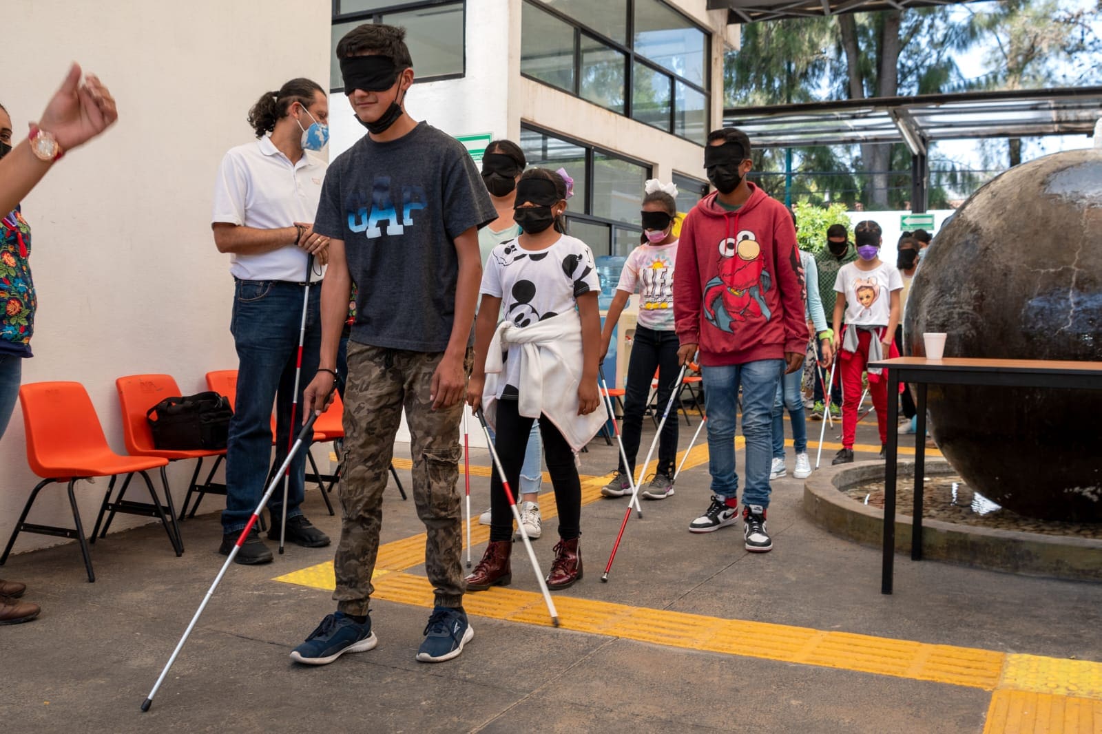 Los talleres se imparten por parte del personal del CREE y en este taller se capacitó a los participantes con conceptos básicos y dinámicas como, aprender campos semánticos en Lengua de Señas, recorrido con bastón, juego de goalball, juegos de motricidad y sensoriales con los ojos tapados.