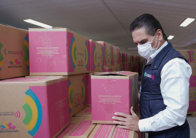 · El Plan Michoacán Alimenta contempla la entrega de 280 mil despensas al mes, casa por casa, con apoyo de la Policía Michoacán