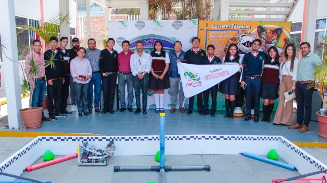 Morelia, Michoacán, 23 de abril de 2024.- Con una demostración y el mayor de los éxitos se dio el banderazo de salida a la delegación Michoacán, conformada por estudiantes del Colegio de Estudios Científicos y Tecnológicos del Estado (Cecytem), que participará en el Mundial de Robótica VEX 2024, a celebrarse en Dallas, Texas.
