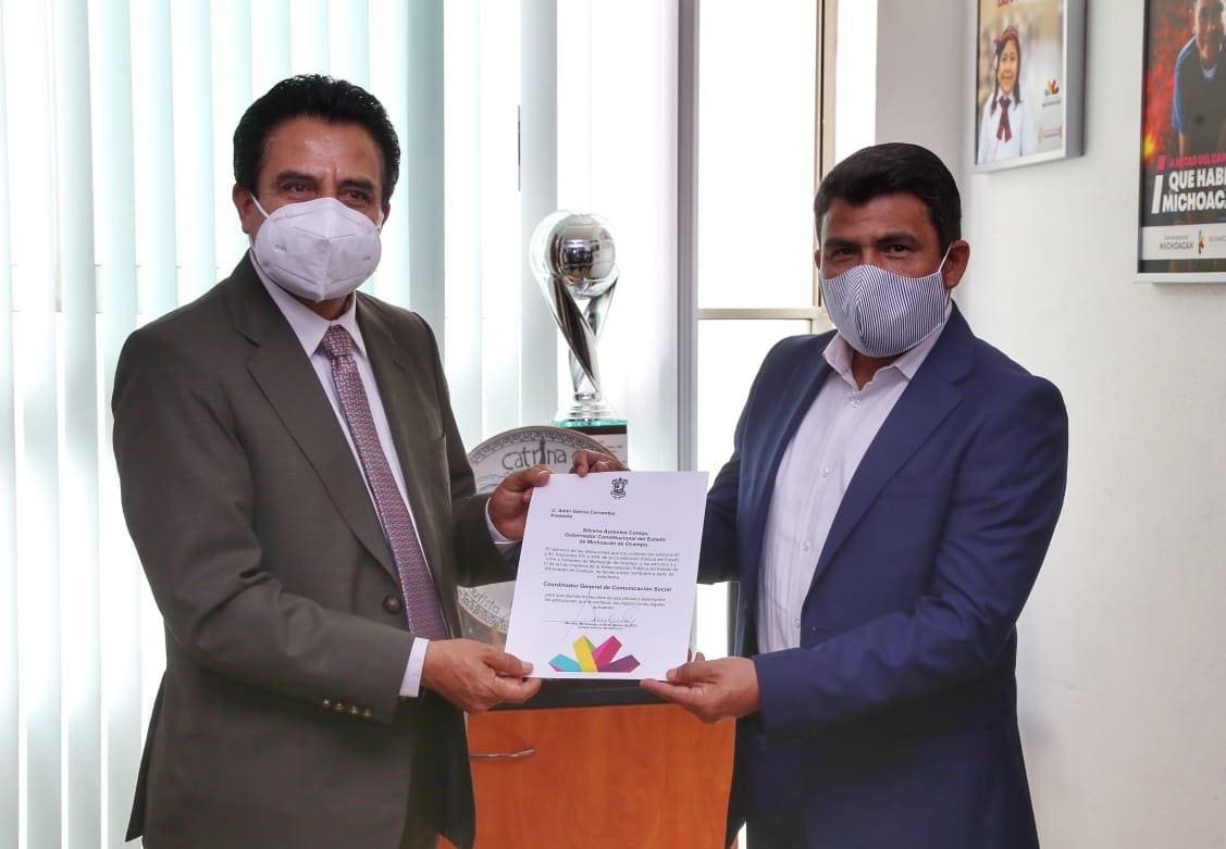• El secretario de Gobierno, Armando Hurtado Arévalo instó a Adán García Cervantes a mantener informados a los michoacanos sobre las acciones del Gobierno estatal