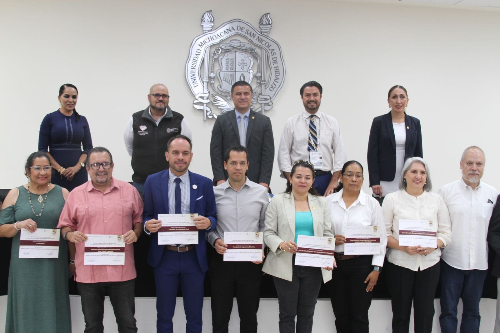 En representación de la Rectora de la UMSNH, Yarabí Ávila González, acudió el secretario general, Javier Cervantes Rodríguez; la coordinadora de Proyectos Transversales y de Responsabilidad Social Institucional, Rubí Rangel Reyes; además de los directores y representantes de las facultades y edificios que obtuvieron su reconocimiento.