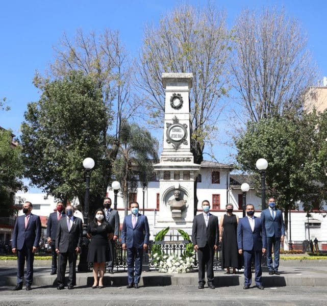 En este marco, autoridades de los tres Poderes del Estado, así como de los tres niveles de Gobierno, junto con el mandatario estatal, rindieron homenaje, a estos personajes de la historia de México, donde colocaron una ofrenda floral y montaron guardia de honor bajo el monumento que guarda su memoria.