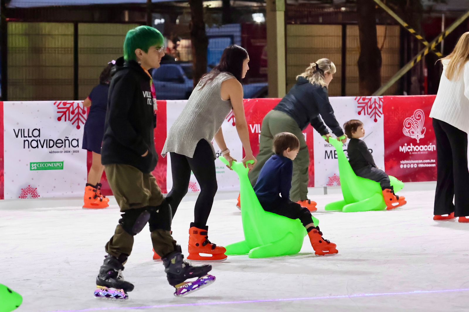 Morelia, Michoacán, 31 de diciembre de 2024 – Este 31 de diciembre, los residentes y visitantes de Morelia tienen la oportunidad de despedir el año patinando en la pista de hielo instalada en el Centro de Convenciones y Exposiciones de Morelia (Ceconexpo). La atracción, parte de la Villa Navideña, ha sido un éxito, atrayendo a cientos de personas que disfrutan del patinaje en un ambiente familiar.