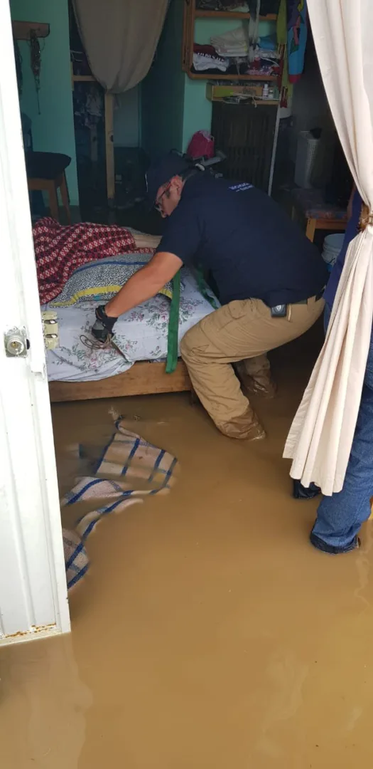 En los trabajos participan desde temprana hora personal de la Secretaría de Seguridad (SSP), a través de labores de rescate, limpieza, primeros auxilios, desazolve, entre otros, en apoyo a las personas afectadas.