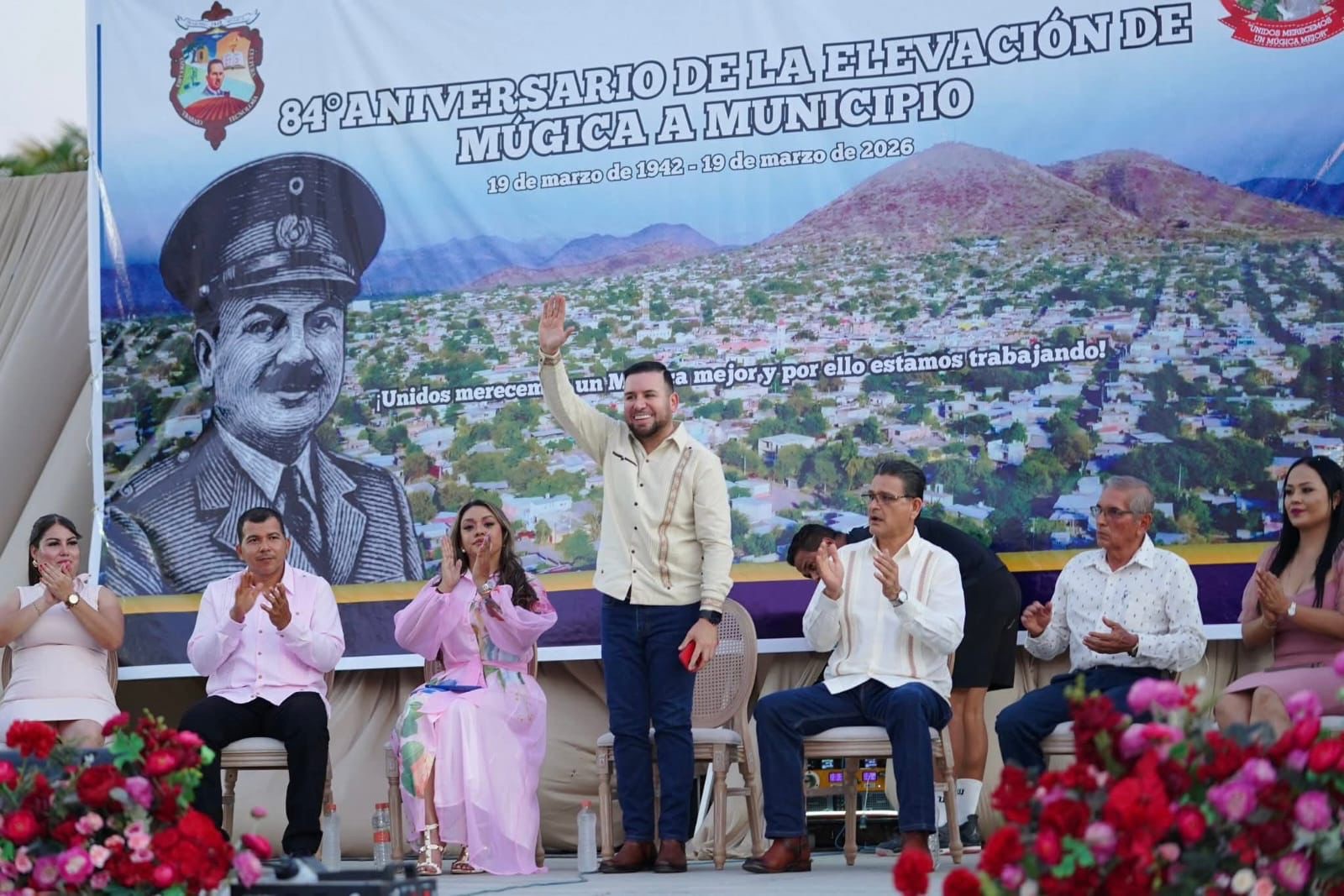 El diputado por el Distrito local 22, Reyes Galindo, participó en las actividades oficiales por el 84 aniversario de la elevación de Múgica a rango de municipio. El legislador acompañó a las autoridades municipales y a la ciudadanía en los actos cívicos programados para esta fecha.