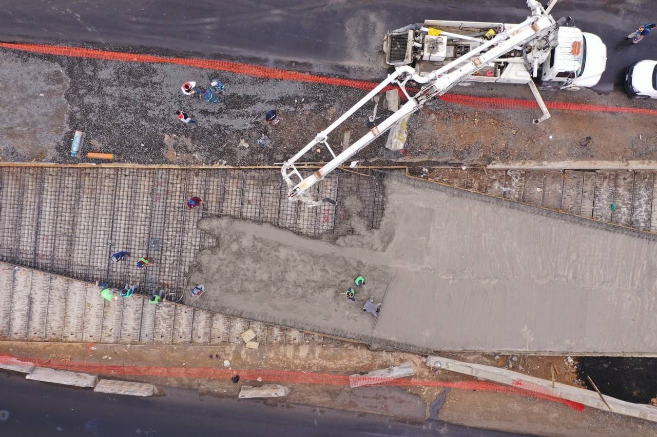 Asimismo, la obra incluye la excavación dirigida en 330 metros lineales para drenaje pluvial; dos retornos y dos pasos superiores a desnivel (trenzas), conformados por 343 tabletas de concreto.