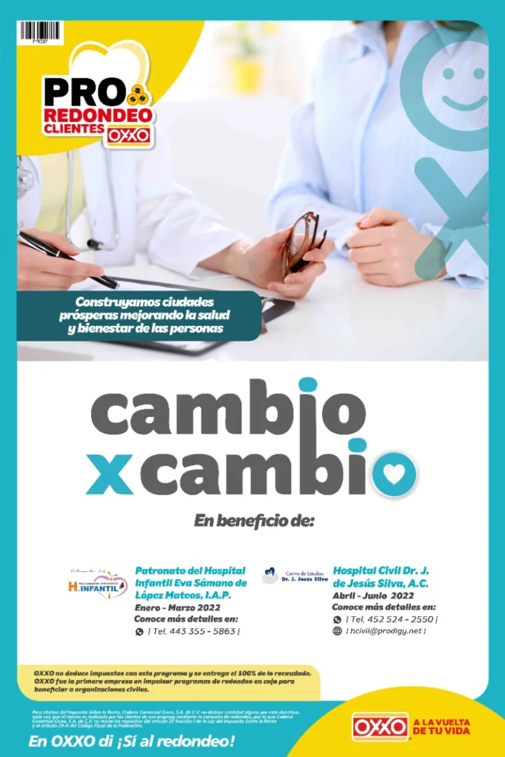 Morelia, Michoacán 11 de enero del 2022. ¿Te has preguntado a dónde van los centavos que redondeas cuando compras en el OXXO?, en este inicio de año serán dos instituciones michoacanas dedicadas a la salud las que serán beneficiadas con el programa de responsabilidad social “Cambio x Cambio” de la cadena de tiendas de conveniencia.