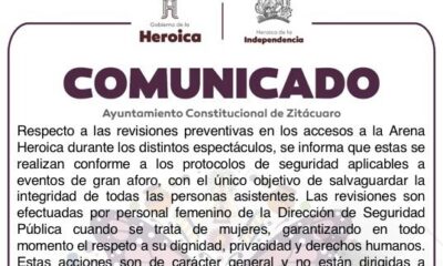 Seguridad3 días agoRefuerzan protocolos de seguridad en accesos a la Arena Heroica en Zitácuaro