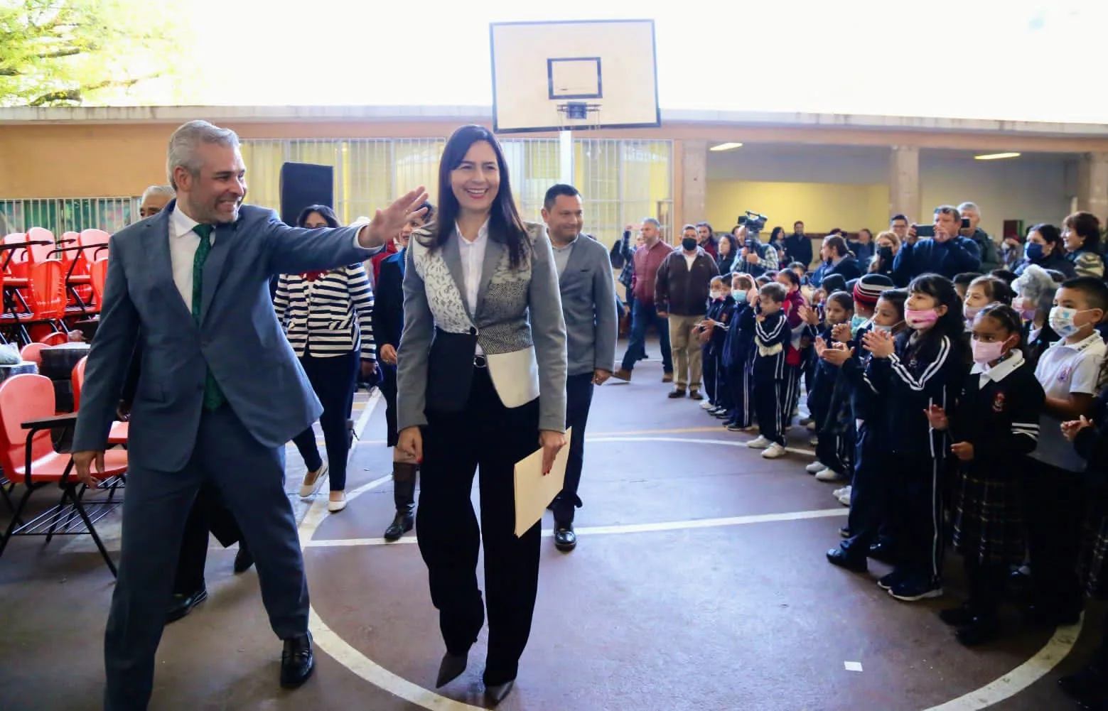 Morelia, Michoacán, 5 de diciembre de 2023.- La titular de la Secretaría de Educación del Estado de Michoacán (SEE), Gabriela Molina Aguilar, reconoció la gran labor que desde las aulas desempeñaron todo el año las y los docentes, quienes culminan labores el próximo 15 de diciembre para iniciar periodo vacacional y posteriormente capacitación.