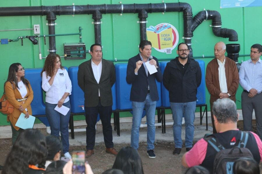 Durante un evento en la Secundaria Técnica 150, se formalizó la entrega de un sistema de captación pluvial bajo el esquema de la iniciativa “Escuelas con Agua”, operada por la fundación de Coca-Cola FEMSA. En este acto, Martínez Alcázar señaló que el proyecto de la planta potabilizadora se trabaja de manera coordinada con los niveles de gobierno estatal y federal.