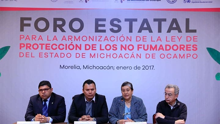 Indicó que México fue el primer país en suscribir el convenio marco de Control de Tabaco y que actualmente se cuenta con 11 marcos jurídicos estatales que son 100 por ciento libres de humo de tabaco; sin embargo, Michoacán será “el primer estado de la región, después del Estado de México, 100 por ciento libre de humo de tabaco que armonice su ley, dispuesto el convenio marco y establezca plenamente los espacios públicos libres de tabaco sin la contemplación de áreas reservadas para fumar”.