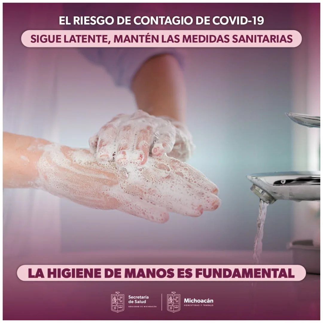 Morelia, Michoacán, 2 de febrero de 2023.- El lavado de manos con agua y jabón disminuye el riesgo de contraer enfermedades respiratorias agudas como el COVID-19, por ello, la Secretaría de Salud de Michoacán (SSM) llama a la población a no bajar la guardia y hacerlo de manera frecuente.