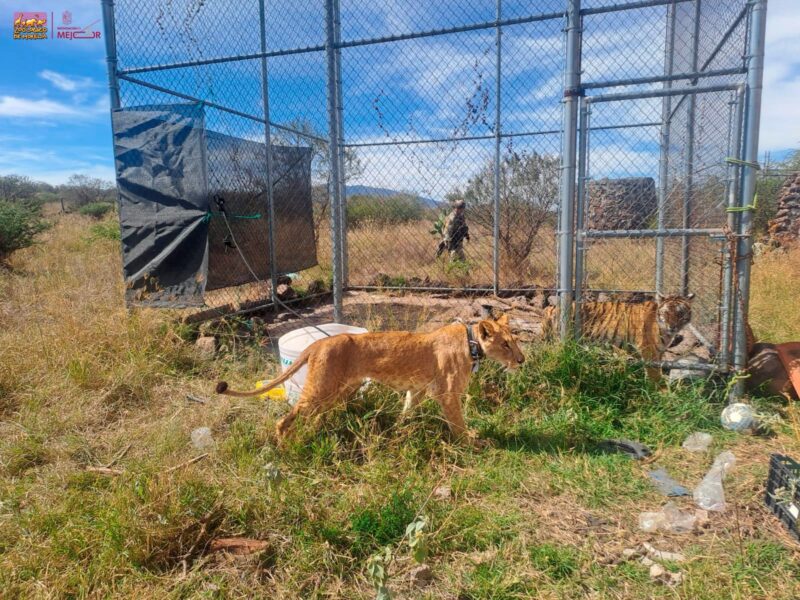 De acuerdo con el reporte de las autoridades, los ejemplares fueron localizados en un entorno de abandono. El tigre se encontraba en una jaula sin techado, mientras que la leona permanecía sujeta del cuello a la estructura. La institución señaló que el sitio carecía de condiciones básicas de bienestar y presentaba acumulación de desechos.