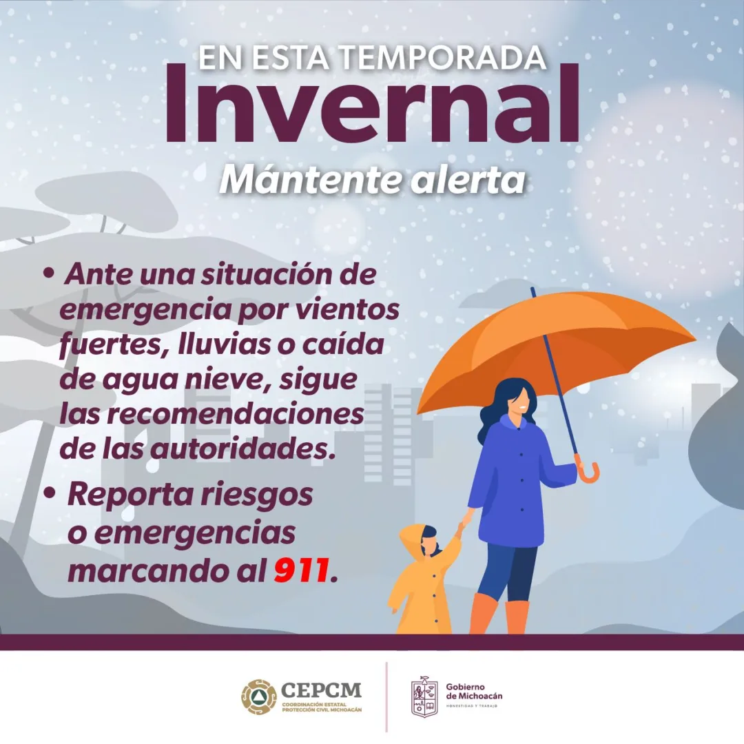 Morelia, Michoacán, 16 de diciembre del 2021.- Diversas condiciones atmosféricas se estarán presentando este día en la entidad, ante ello, la Secretaría de Gobierno a través de la Coordinación de Protección Civil exhorta a la población a mantenerse informada sobre las condiciones meteorológicas a través de fuentes oficiales.