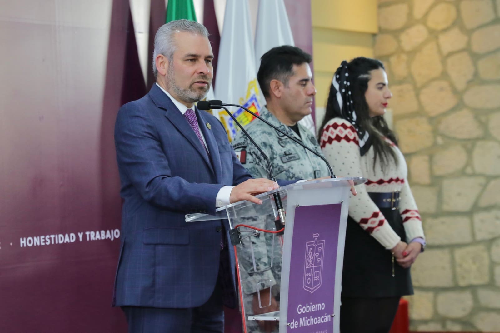 Acompañó al gobernador el coronel Luis Ernesto López Heredia, coordinador de la Guardia Nacional en Michoacán.