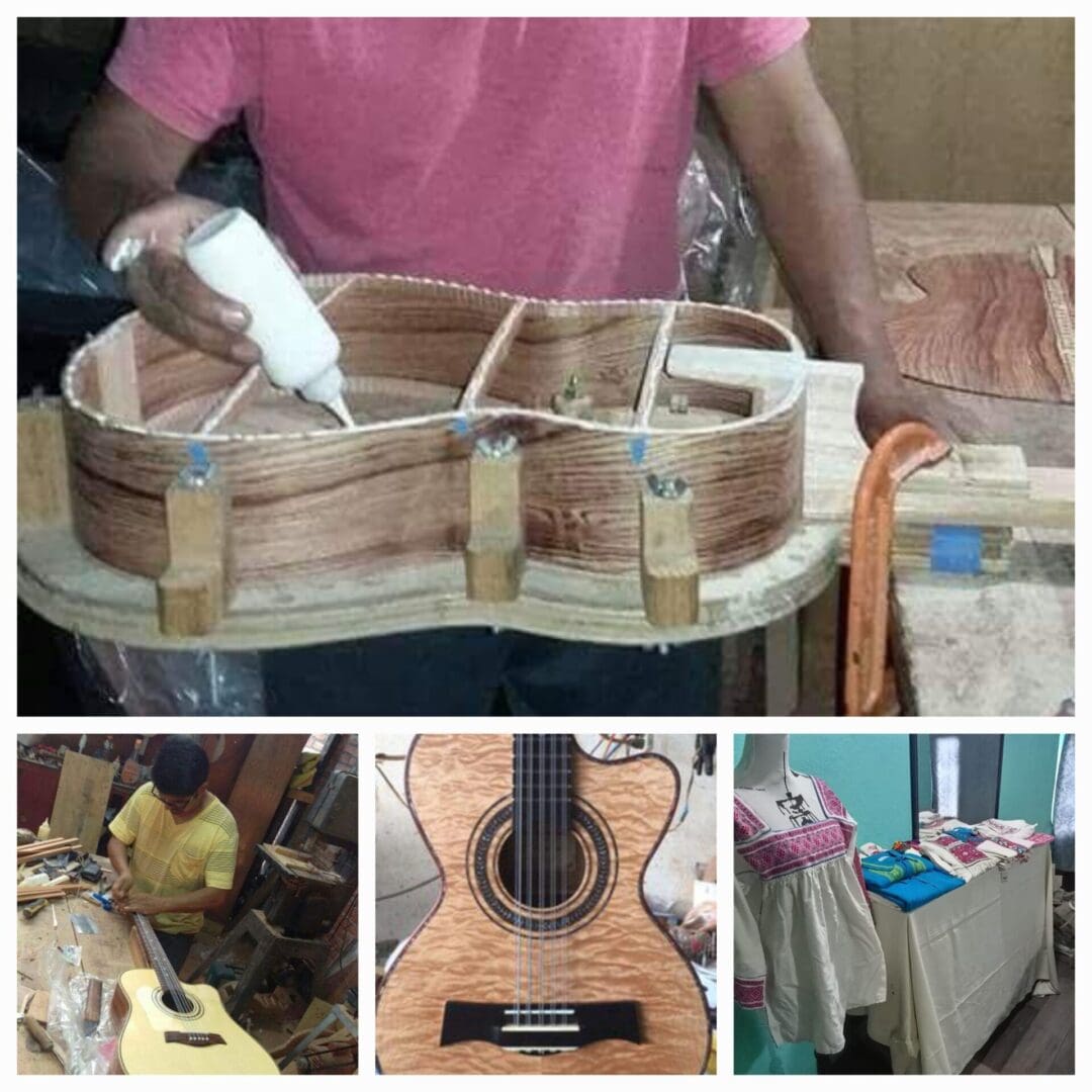 El artesano laudero Noé Zalapa Solís, del Pueblo Mágico de Paracho, tiene más de 20 años de elaborar guitarras y comentó que a través del financiamiento pudo comprar la materia prima que necesita para hacer sus guitarras y tener lista la que participará en el próximo concurso de instrumentos de cuerda en el marco de la Feria de la Guitarra.