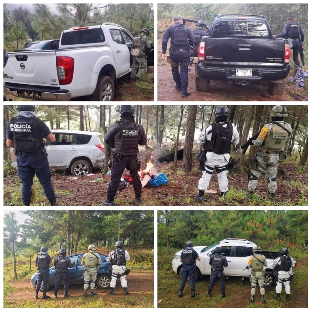 En acción conjunta, se destruyó un campamento y se aseguraron 4 vehículos en Chilchota