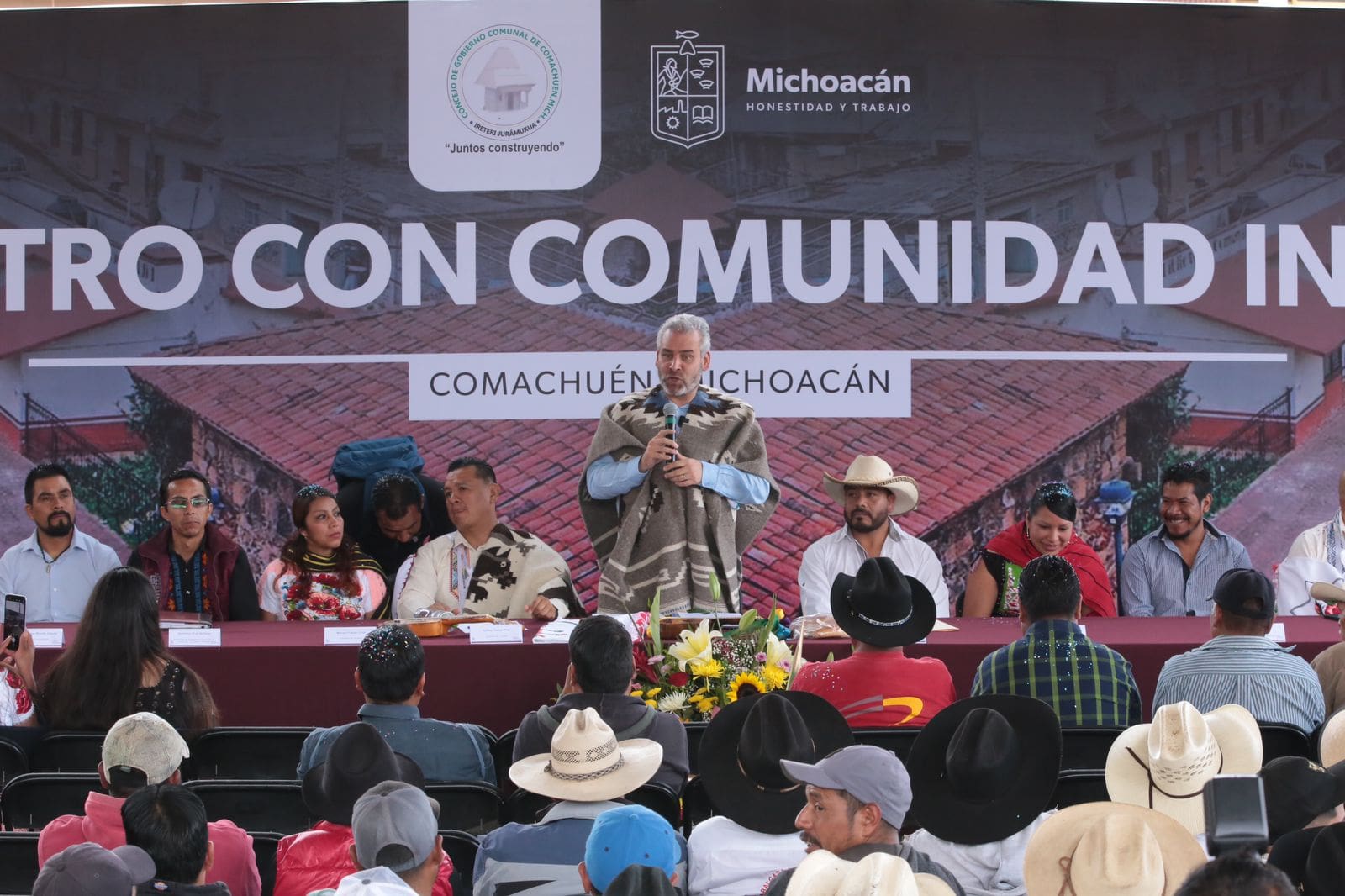 Tras compartir que la visión de su administración es que las 138 tenencias indígenas de Michoacán tengan autogobierno para que ejerzan sus derechos a la libre determinación de recursos para obra y fortalecimiento a la seguridad, el mandatario reiteró el compromiso de apoyar el desarrollo y reconocimiento de los pueblos originarios.