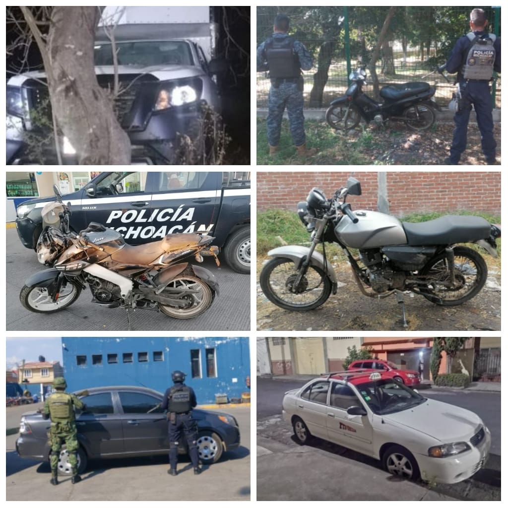 Resultado del incremento a las labores preventivas, los agentes de la Policía Michoacán aseguraron en los citados municipios los automotores de las marcas Bajaj, Chevrolet, Honda, Italika, y dos Nissan, mismos que se encontraban en aparente situación de abandono.