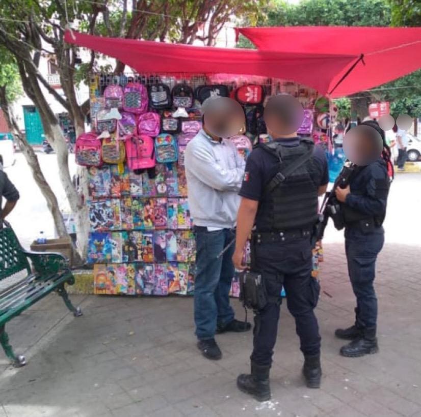 Elementos de la Policía Michoacán retiraron de la zona Centro de la cabecera municipal, diversos puestos donde se vendía artículos no esenciales y que van en contra de las medidas establecidas para evitar la propagación del virus.