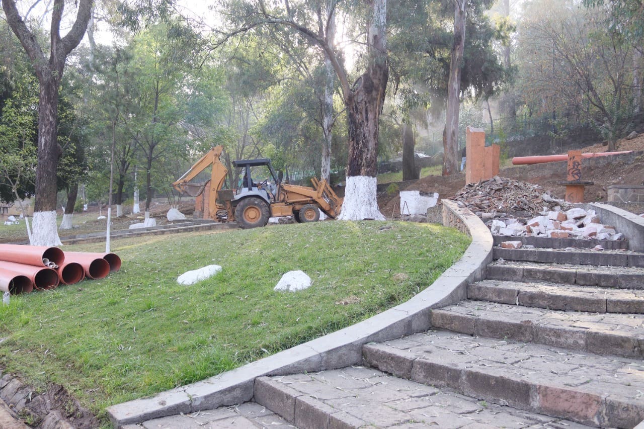 Morelia, Michoacán, a 12 de enero de 2022.- Con la finalidad de darle un nuevo y mejorado rostro al parque “Los Cenadores”, conocido así por las y los morelianos que se reúnen para convivir con familiares y amigos, el Ayuntamiento de Morelia, trabaja en la rehabilitación del espacio recreativo llamado “Santa Cecilia”.