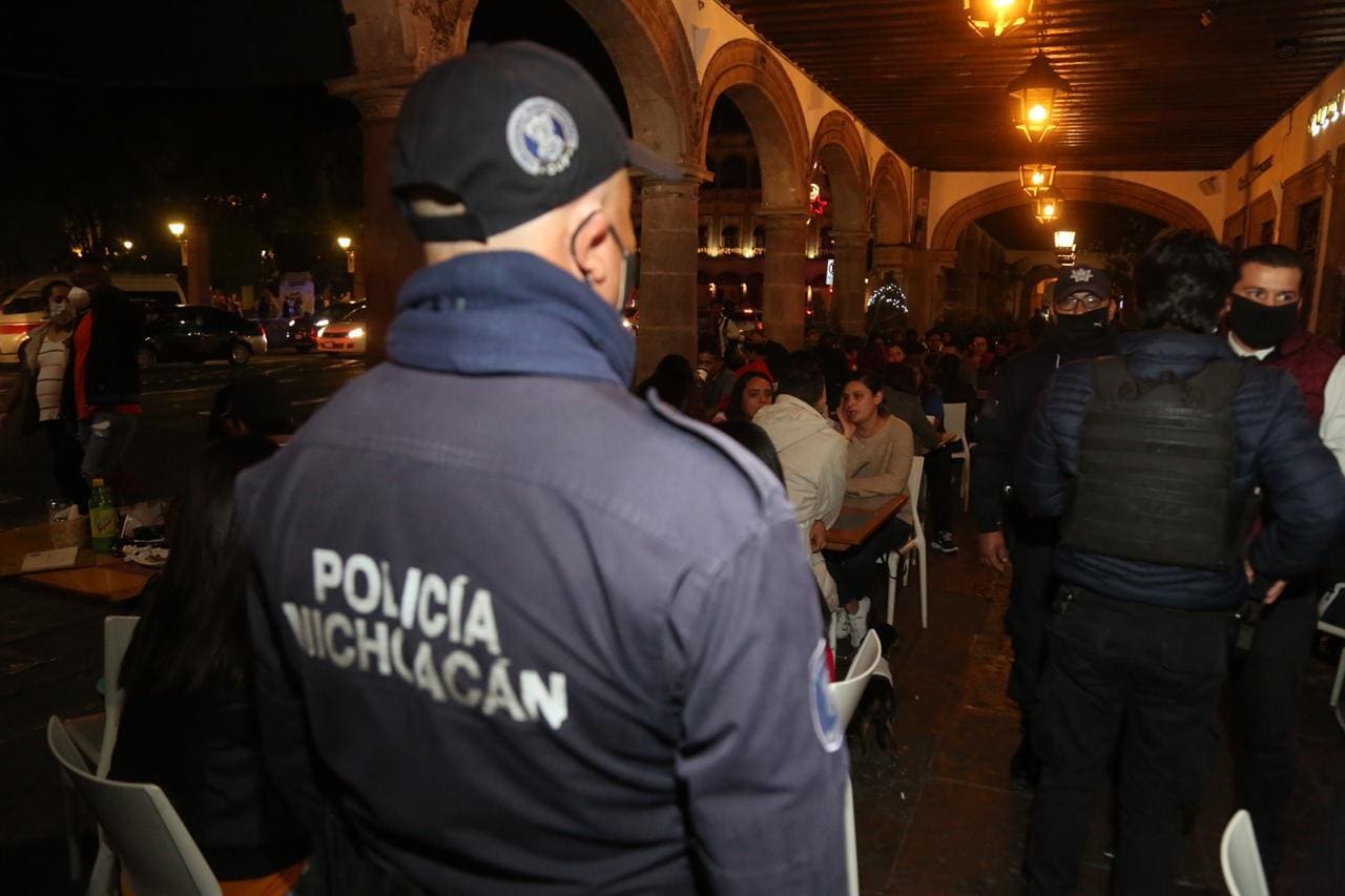 Agentes de la Policía Michoacán llevaron a cabo un dispositivo de prevención, donde recorrieron el primer cuadro de la ciudad para verificar el cumplimiento de la diversas medidas de prevención en bares y restaurantes, como lo son un aforo máximo de 75% de su capacidad, filtros con gel antibacterial, toma de temperatura, sana distancia entre cada mesa y uso de cubrebocas.