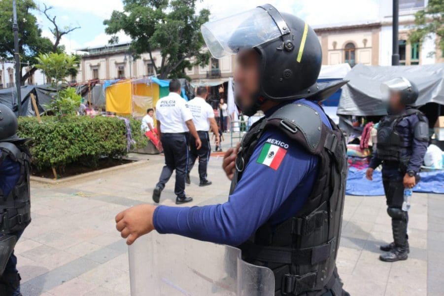 Morelia, Michoacán.- Bajo la premisa de que prevalezca el Estado de Derecho y el orden, elementos de la Secretaría de Seguridad Pública (SSP) iniciaron la liberación de la plaza Melchor Ocampo que integrantes del llamado Frente Nacional de Lucha por el Socialismo (FNLS) mantenían tomada, impidiendo a la población el uso y disfrute de dicho espacio público.