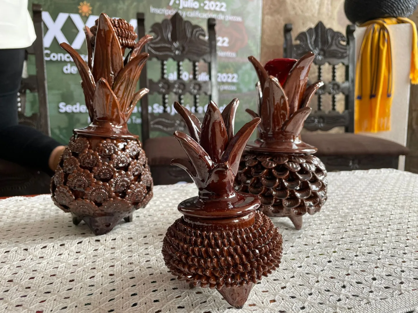 Tangancícuaro, Michoacán, 4 de julio de 2023.- Artesanas y artesanos de San José de Gracia invitan al público a visitar su localidad del 6 al 9 de julio y adquirir las mejores piñas en la rama de alfarería en la segunda Feria de la Piña, que estará frente a la jefatura de tenencia, en horario de 11:00 a 19:00 horas.