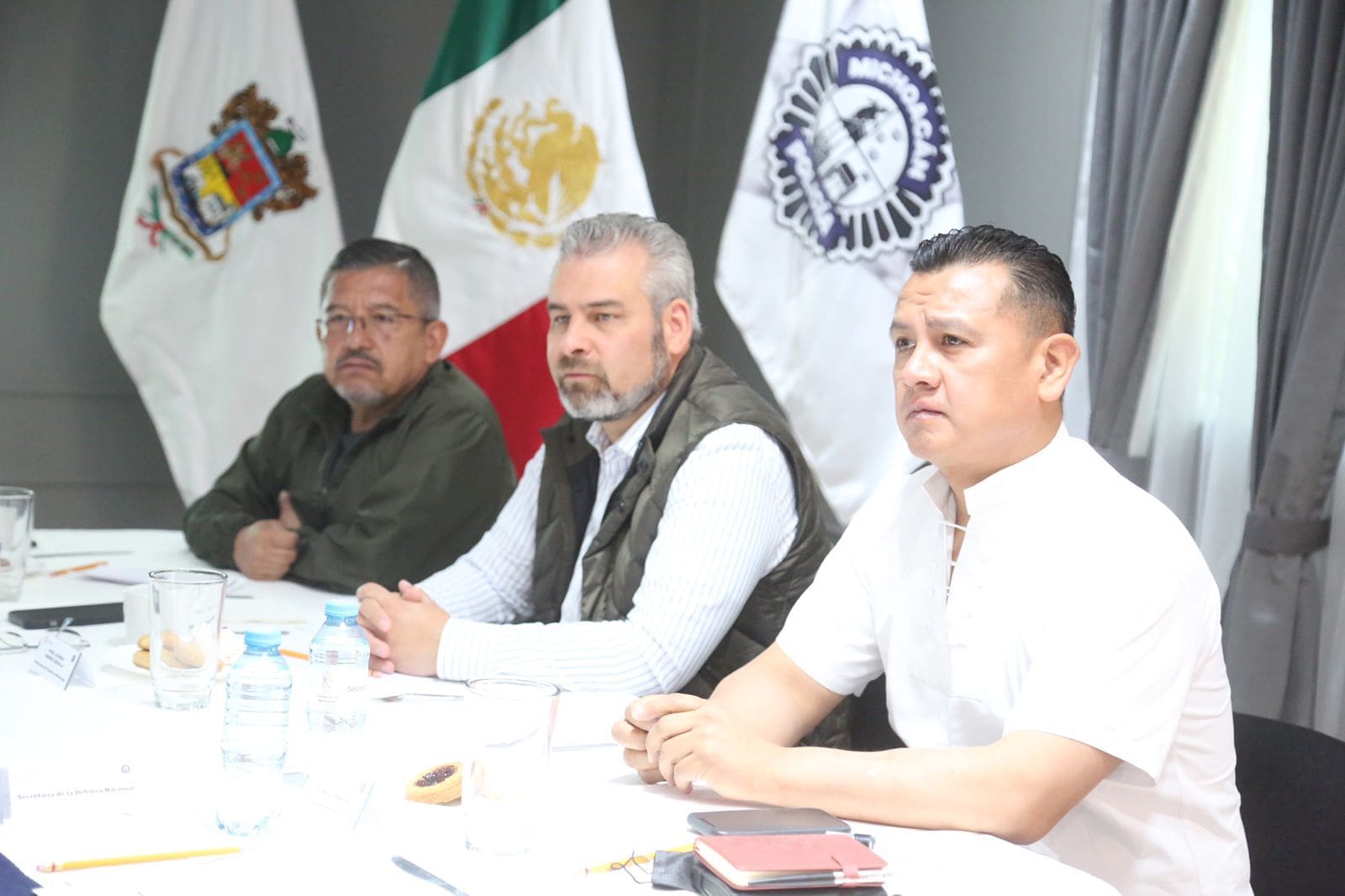_ • En la reunión acudió el gobernador del estado Alfredo Ramírez Bedolla, el titular de la Secretaría de Seguridad Pública General José Alfredo Ortega Reyes y autoridades de la Sedena, GN, estatales y municipales._